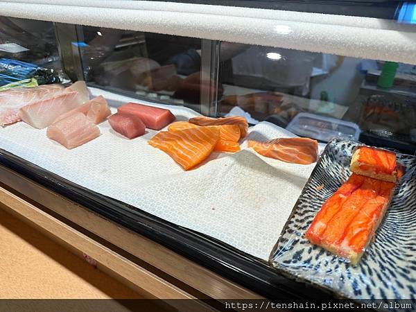 吧台上的冷藏櫃內,井然有序的擺放著當日最新鮮的魚料,在低溫保鮮下,等待化身為饕客們的座上佳餚。每一道料理,皆為現點現作,確保食材的新鮮度,讓每位顧客都能品嚐到最鮮美的風味。