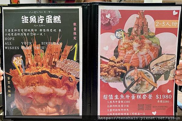 其中,最讓我驚豔的莫過於超浮誇的客製化生魚片蛋糕!層層堆疊的生魚片,宛如一座小山,奢華程度讓人嘆為觀止。這已經不僅是一道美食,更像是一件精緻的藝術品,無論視覺還是味覺,都令人期待萬分!不過要特別提醒,生魚片蛋糕是完全客製化的,每一份都使用當日最新鮮的魚料精心製作,因此數量有限,無法即點即上,想要給自己或熱愛生魚片的朋友一個永生難忘的慶生會,記得提早預約哦!
