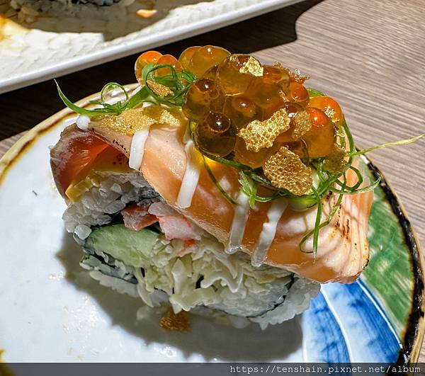 晶瑩剔透的鮭魚卵本來就是頂級壽司的點睛之筆,濃縮大海鮮味的爆漿滋味,每一口都帶來極致的鮮美;金箔更是畫龍點睛,讓這道壽司不只美味,還充滿儀式感。鮭魚的油脂溫潤綿密,搭配鮭魚卵的爆汁口感,層次感太棒了,每一口都是海味的極致演出,這樣的組合,讓人忍不住想一吃再吃!