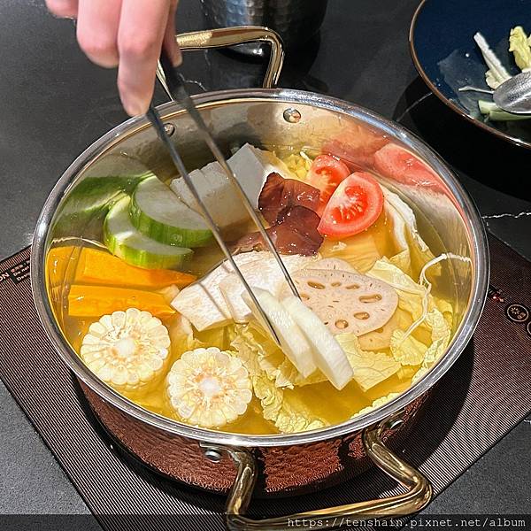 食材依序擺放,整齊地置入鍋中,那畫面本身就已療癒人心。而更令人驚喜的是,服務人員會細心控制火力,確保食材熟透卻不致沸騰翻滾,避免過度加熱破壞食物的營養,完美體現了禪風慢食的健康哲學。所以在這裡,請配合放慢進食的速度,靜心品嚐每一口原味,讓來自大地的珍貴食材,悄然滋養你的身心,彷彿春雨般潤物無聲。