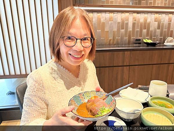 這款「烤青甘下巴」可是 SHABU ZEN 的隱藏版限量菜色,並非菜單上固定供應的料理,而是根據當日漁獲決定是否提供,說它是可遇不可求的夢幻逸品一點也不為過。為了保持海鮮最佳狀態,單點或套餐內的各式魚片,都是使用當天漁港直送的現流漁獲,由主廚現場分切處理。正因如此,每天有的下巴魚種都可能不同,且僅能限量供應,晚來就吃不到。所以想要一嚐這道烤青甘的極品風味,記得一入座就先向服務人員詢問,說不定你就成了那個幸運的「有緣人」。