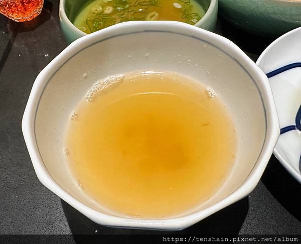 入座不久,服務人員親切地依序送上菜單、醬料與來自日本靜岡縣的玄米茶。這款玄米茶發酵程度低、咖啡因含量也相對溫和,即使下午飲用也不擔心影響睡眠。茶香清雅,伴隨著淡淡的烤海苔香與玄米的圓潤穀物氣息,入口清爽、溫潤暖胃,是用餐前最恰到好處的開場。
